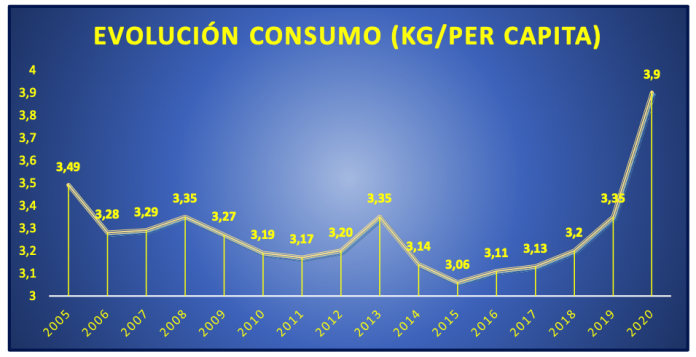 Si bien parte de este incremento hay que achacarlo al acaparamiento provocado por la incertidumbre de los primeros momentos del confinamiento, no es menos cierto que el cambio de tendencia que comenzó a manifestarse en 2016, parece haberse afianzado en los hogares españoles alcanzando en 2019 un incremento acumulado del 8% desde esa fecha.