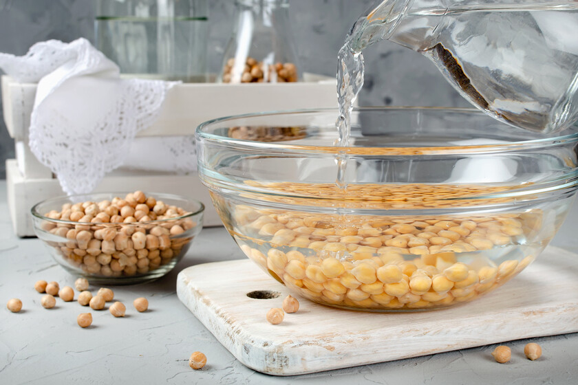 Utiliza un recipiente grande, ya que las legumbres pueden duplicar o triplicar su volumen.